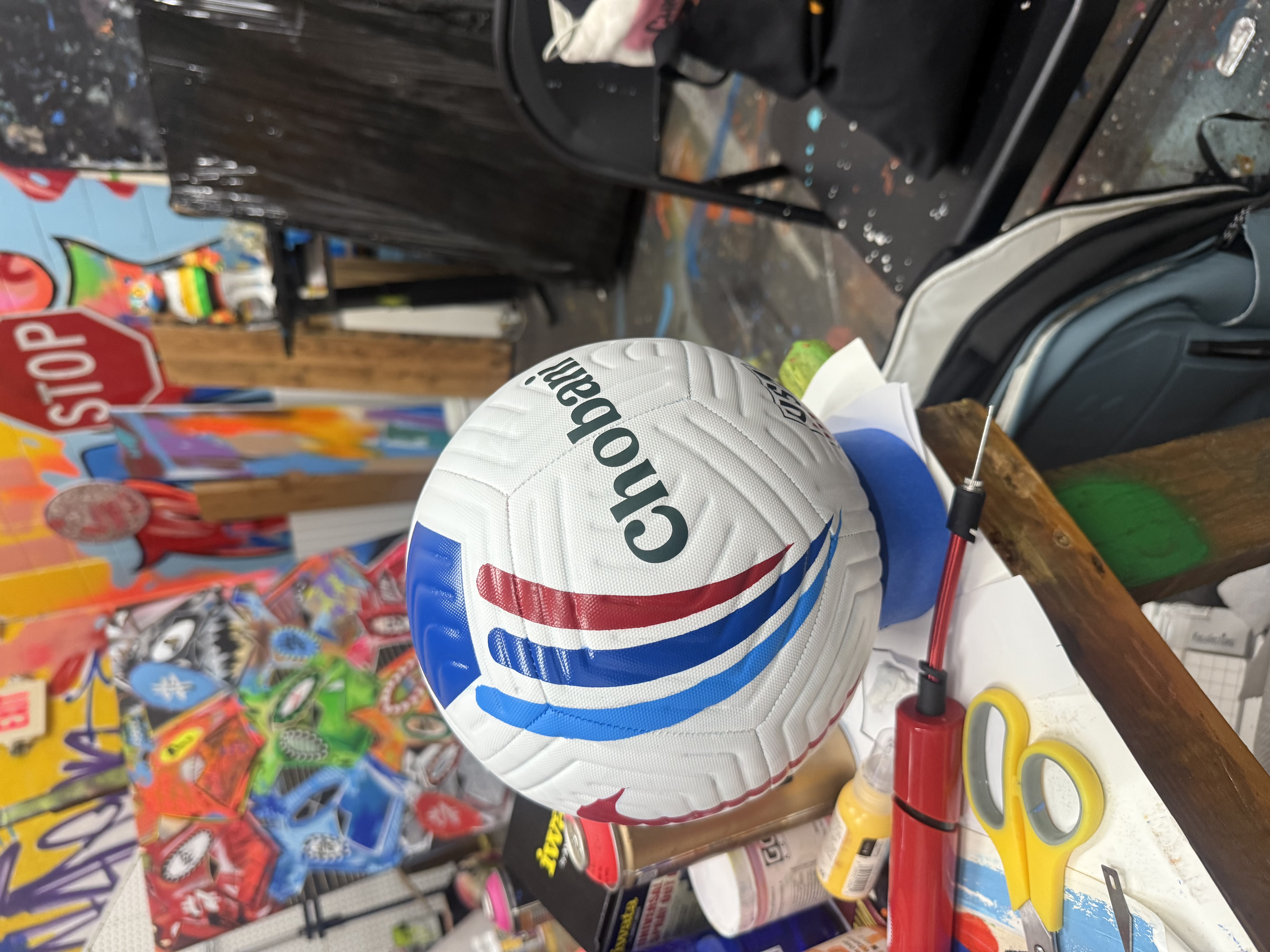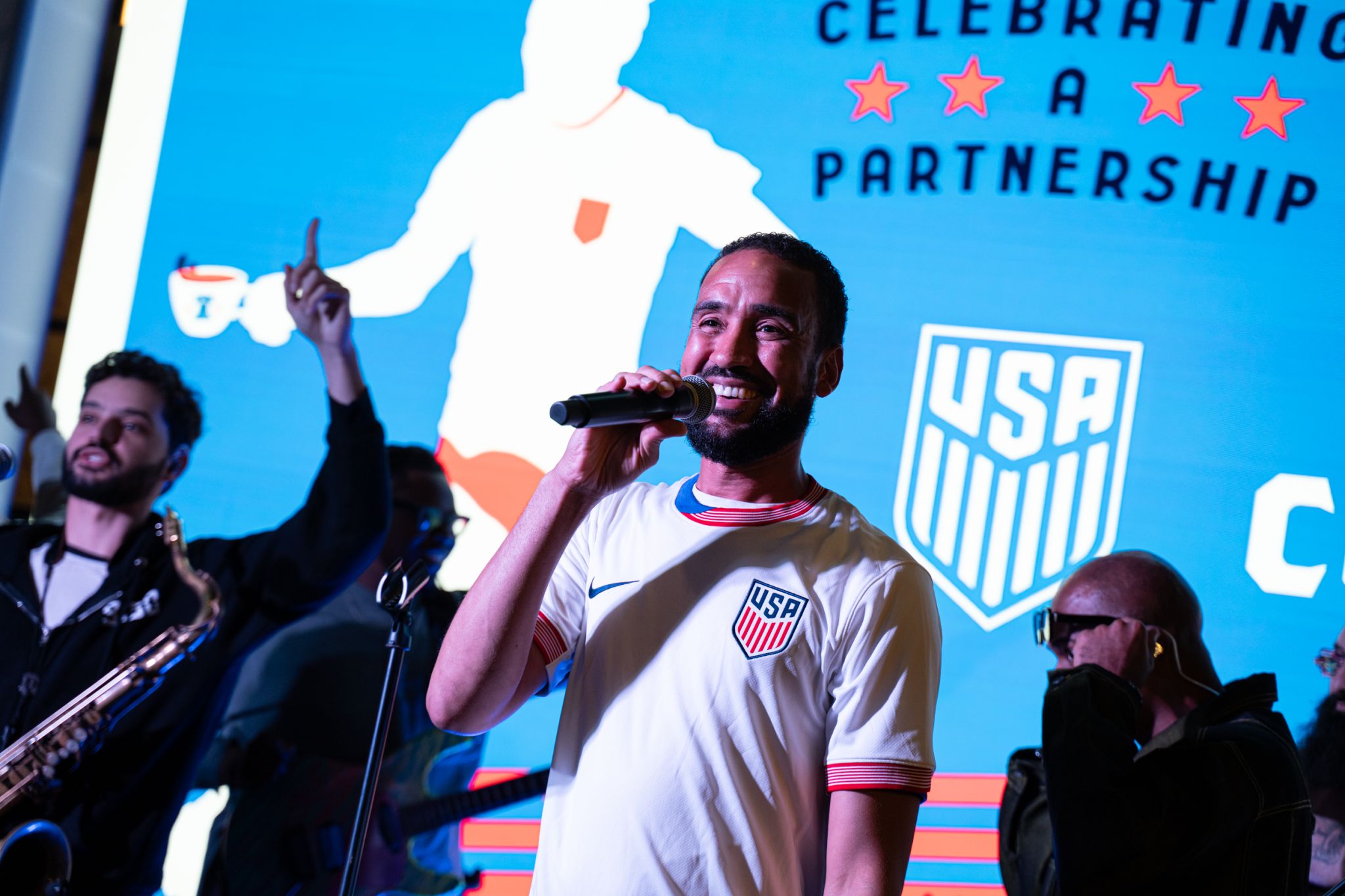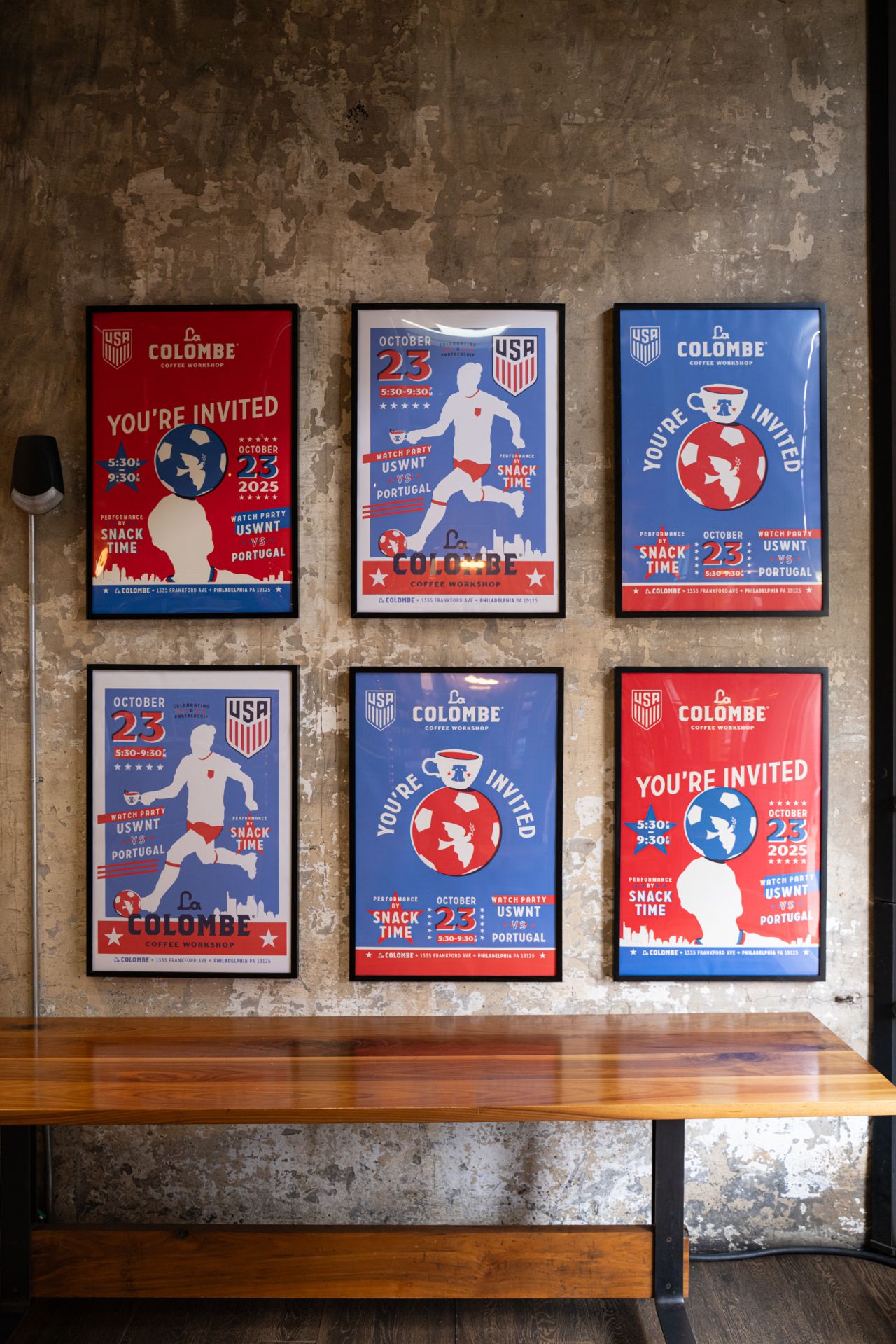 We transformed the La Colombe coffee workshop in Fishtown, Philadelphia into a soccer-themed watch party to celebrate the La colombe sponsorship of US Soccer. Complete with exterior and interior graphics, a soccer freestyler, merch giveaways, an outdoor soccer field patio, and a huge LED screen. 300+ guests were invited to swing by for free food, custom posters, drinks, a set from local band Snacktime and a watch party. In partnership with artist King Saladeen, we also made (6) custom soccer balls that were displayed during the event.